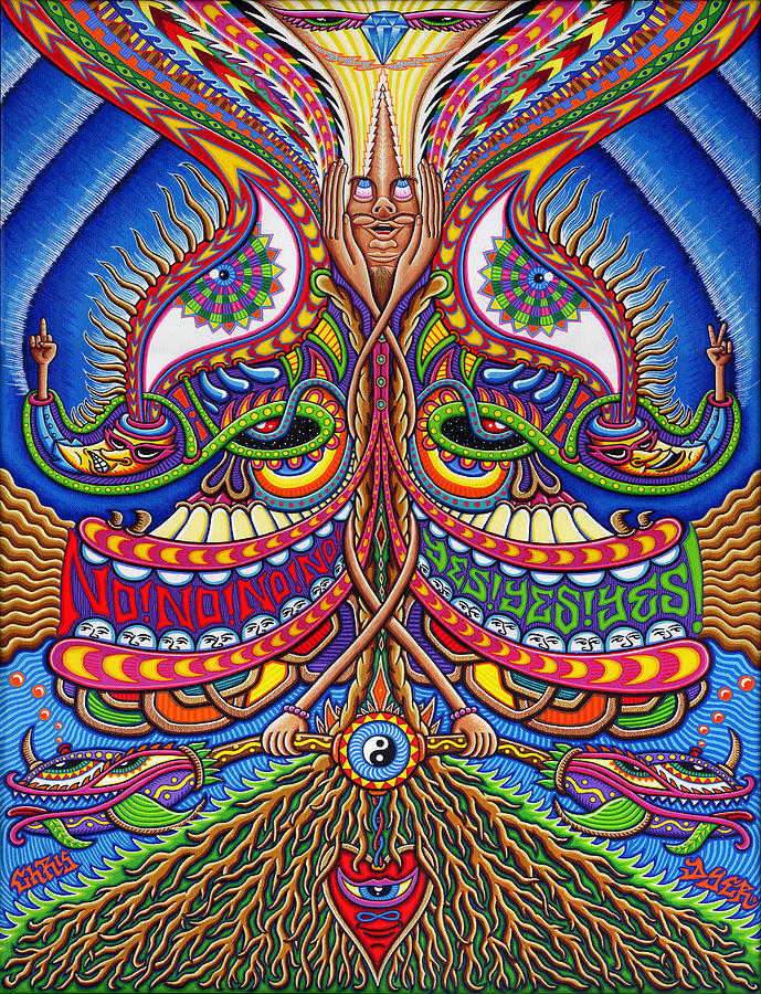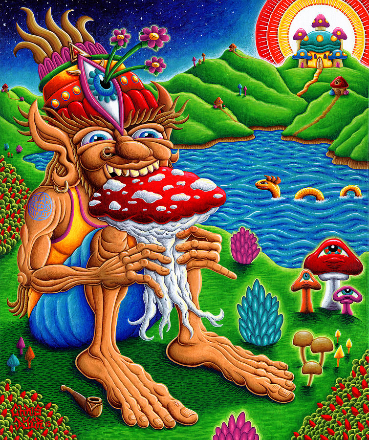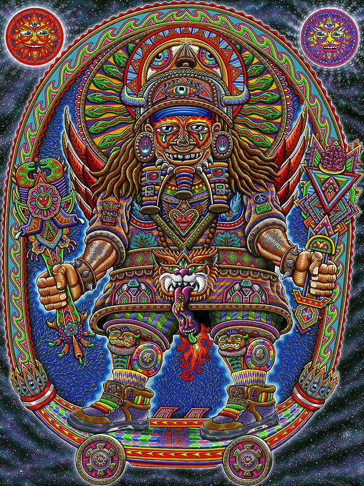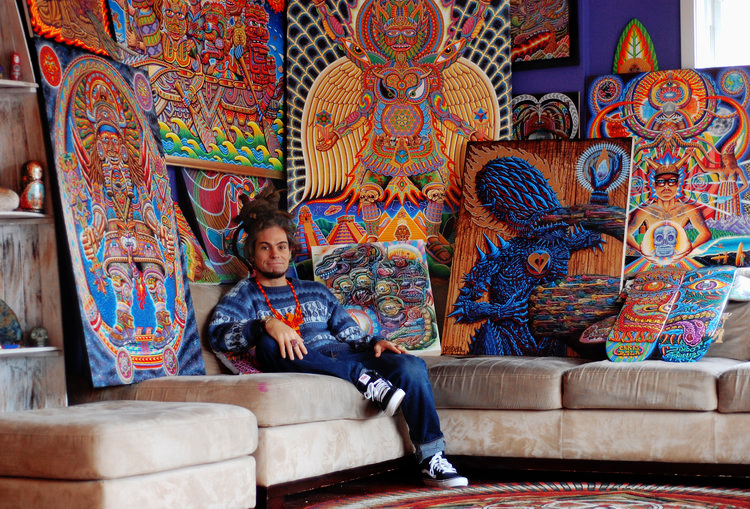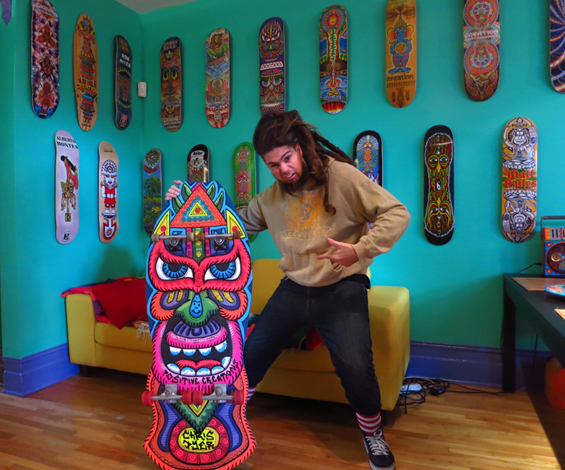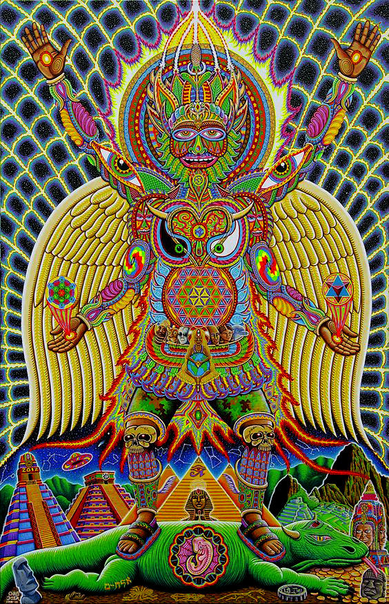 Chris Dyer é um dos nomes que ressoa forte quando o papo é sobre a nova geração de artistas visionários. Sua arte se caracteriza por desenhos vibrantes com componentes espirituais e lembranças de culturas ancestrais, que se misturam com elementos urbanos, relativos ao skating e ao surfing. Essa inesperada fusão, é a marca registrada do artista canadense, quem consegue colocar um toque divertido e descontraído, contrastando com o ar de solenidade que normalmente recobre a maioria das obras psicodélicas que vemos por aí.