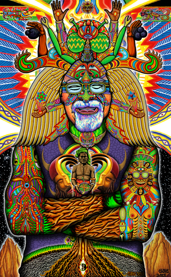 C.D : Para começar, eu acho que as drogas-medicinas não deveriam ser ilegais. Ninguém deveria ir na cadeia por usar uma substância que altera seu próprio estado de consciência. Quando um governo torna ilegal uma substância, é justamente nesse momento que surge a ideia que quem ainda usa ela é “cool”, rebelde, etc. Uma medicina não deveria ser cool, porque isso a transforma numa moda do e pró ego. As substâncias por elas mesmas, são neutras: podem te ajudar ou fazer mau, dependendo do seu momento e da intenção que você tem usando ela. Pessoalmente gostaria que muita mais gente buscasse realmente sarar os traumas do peso da vida humana a partir delas, e não como algo cool para fugir ou esquecer de uma ferida.