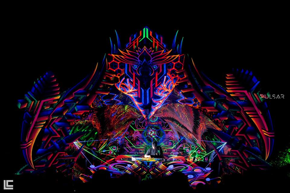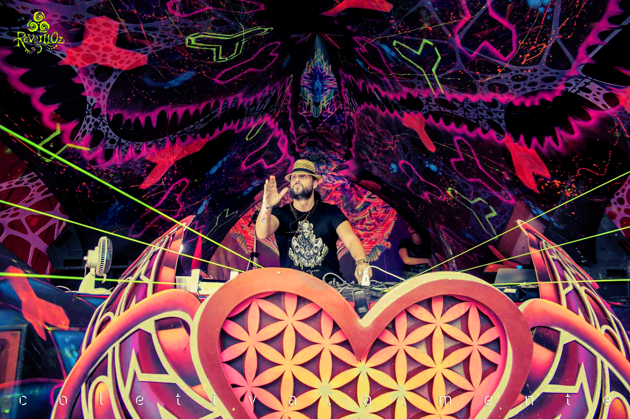 Busco muita referência fora de festas. Sou apaixonado por tatuagem, graffiti, arte digital, arte visionária, arquitetura, povos primitivos, culturas tribais, geometria sagrada, street art, muralismo, meus amigos e minha família.