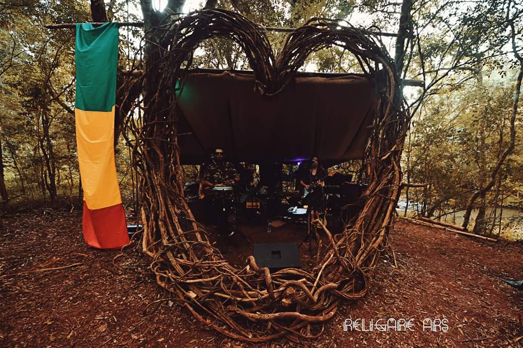 A decoração do palco principal foi de tirar o fôlego, um dos projetos mais lindos desenvolvido pela Nhanderu Artes. Com base no nome do festival NYAHBINGHI.
