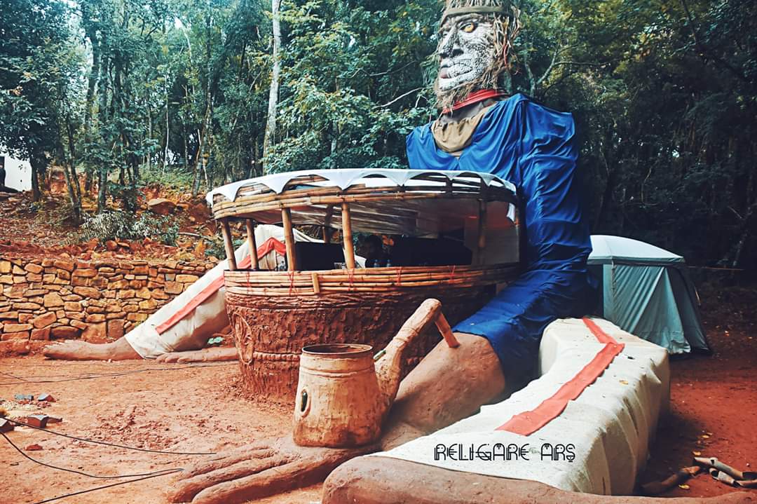 Ao lado do palco principal, foi construído com bioconstrução um sapo simbolizando o kamboo, medicina a qual se extrai o veneno do sapo e se aplica em pontos queimados do braço. Pelo Giovane Frigo, Romeu Barbosa E Bryan Genesse.
