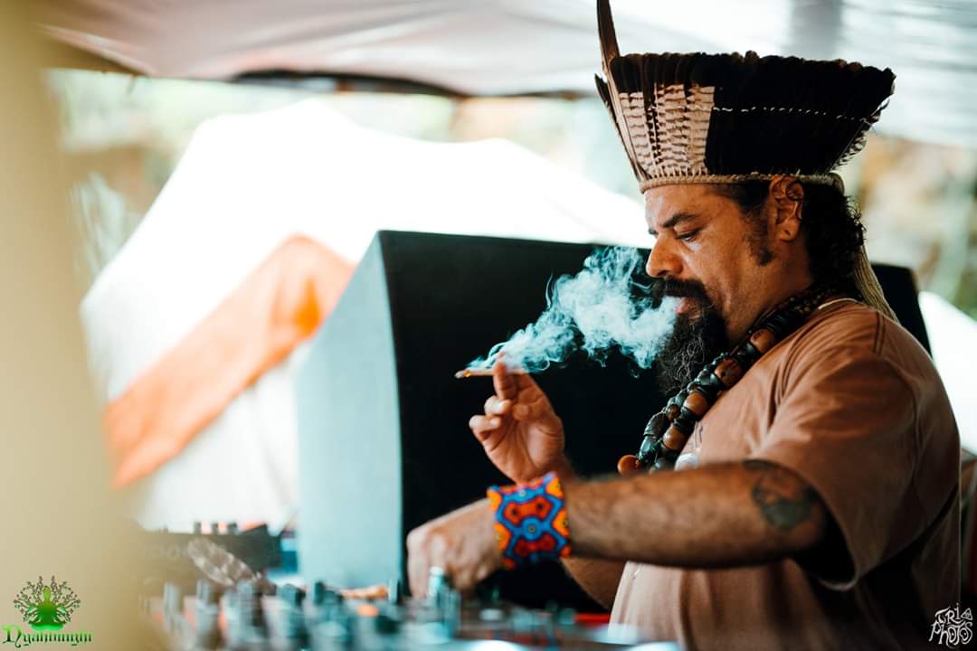 Seus “dreads “ eram de cipós todos emaranhados, suas vestes azul e branco era reutilização de tecido de uma antiga fábrica de boné que tinha na granja, na sua mão direita um Peyote planta de poder, o pescoço com as argolas relembrando as mulheres Kayan ou Padaun (nome da tribo) na sua mão esquerda um cachimbo, simbolizando a consagração da erva sagrada, cachimbo esse que foi acesso na abertura da pista, guiado pelo Munsmawa.