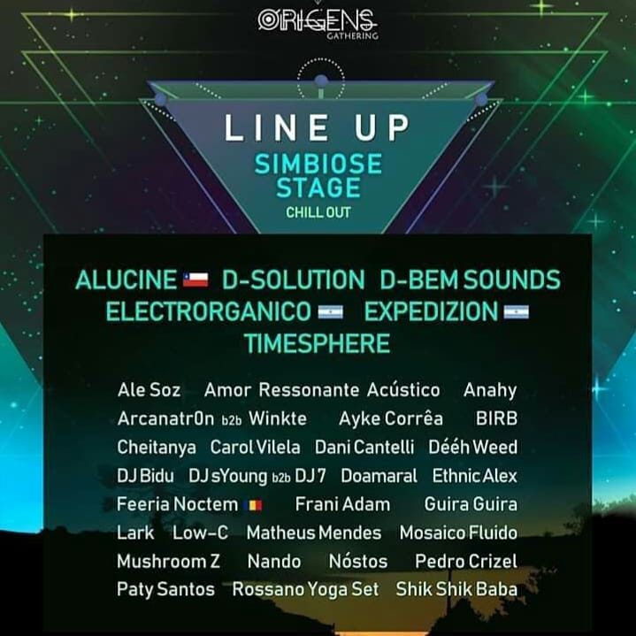 Neste contexto, um dos coordenadores da pista alternativa, o Matheus Mendes, explicava: “Mesmo com algumas exceções, normalmente chill out bem feito é o reflexo de um festival bem organizado. É um sinal de que foi dada a devida importância, atenção e carinho que o espaço merece. Festivais bem conceituados tem ótimos chill outs, bem cuidados e funcionais. E é dessa forma que vejo o Simbiose Stage dentro do Origens, como um pilar super importante de um festival de longa data (…) Do dançante ao relaxante, do étnico circense ao tribal, do psychill ao bass music, a pista Simbiose vai além da música. Roda de poesias, intervenções artísticas, uma seleção de filmes de conceito psicodélico e surrealista vão se sincronizar com o momento e horário”.