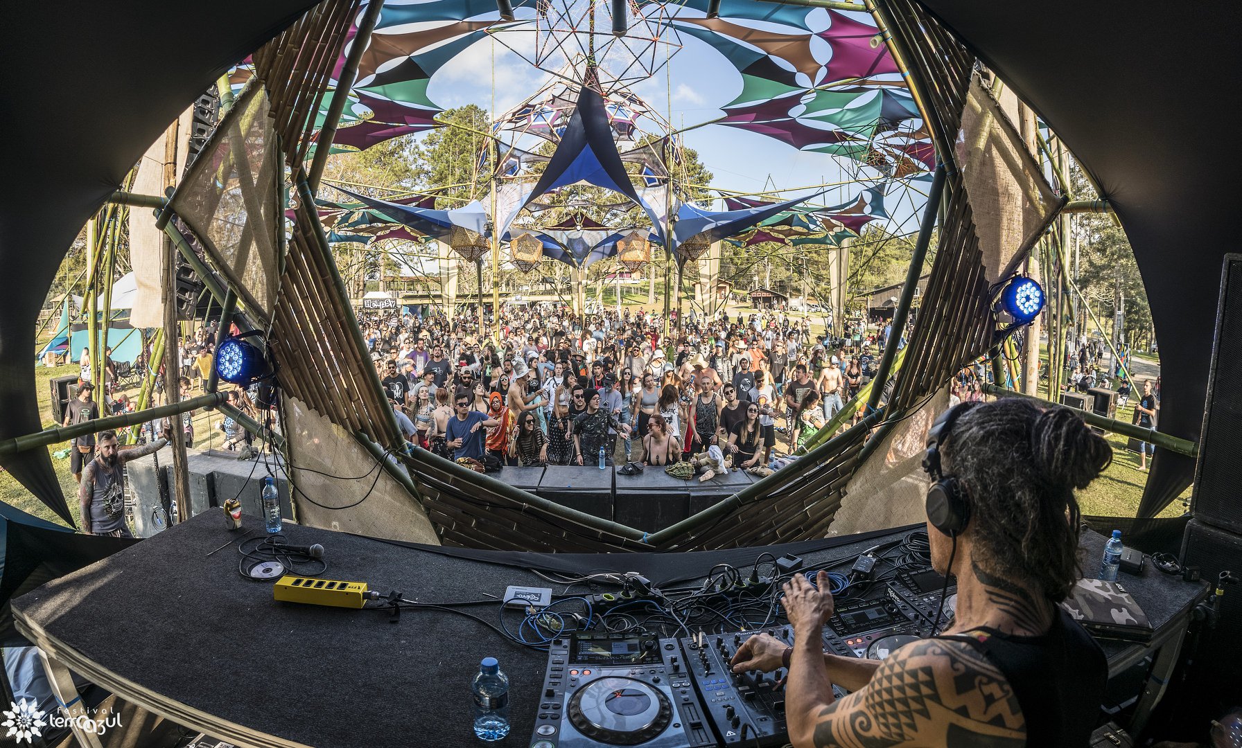 No fim da tarde, tivemos o prazer de curtir o projeto de Full On, Yagé, que é composto pelo live vocal da querida Raghini, com sua voz angelical e sua flauta, ao lado de Ninad, no comando das CDJ’s e a guitarra. Nos concederam uma experiência sonora maravilhosa!