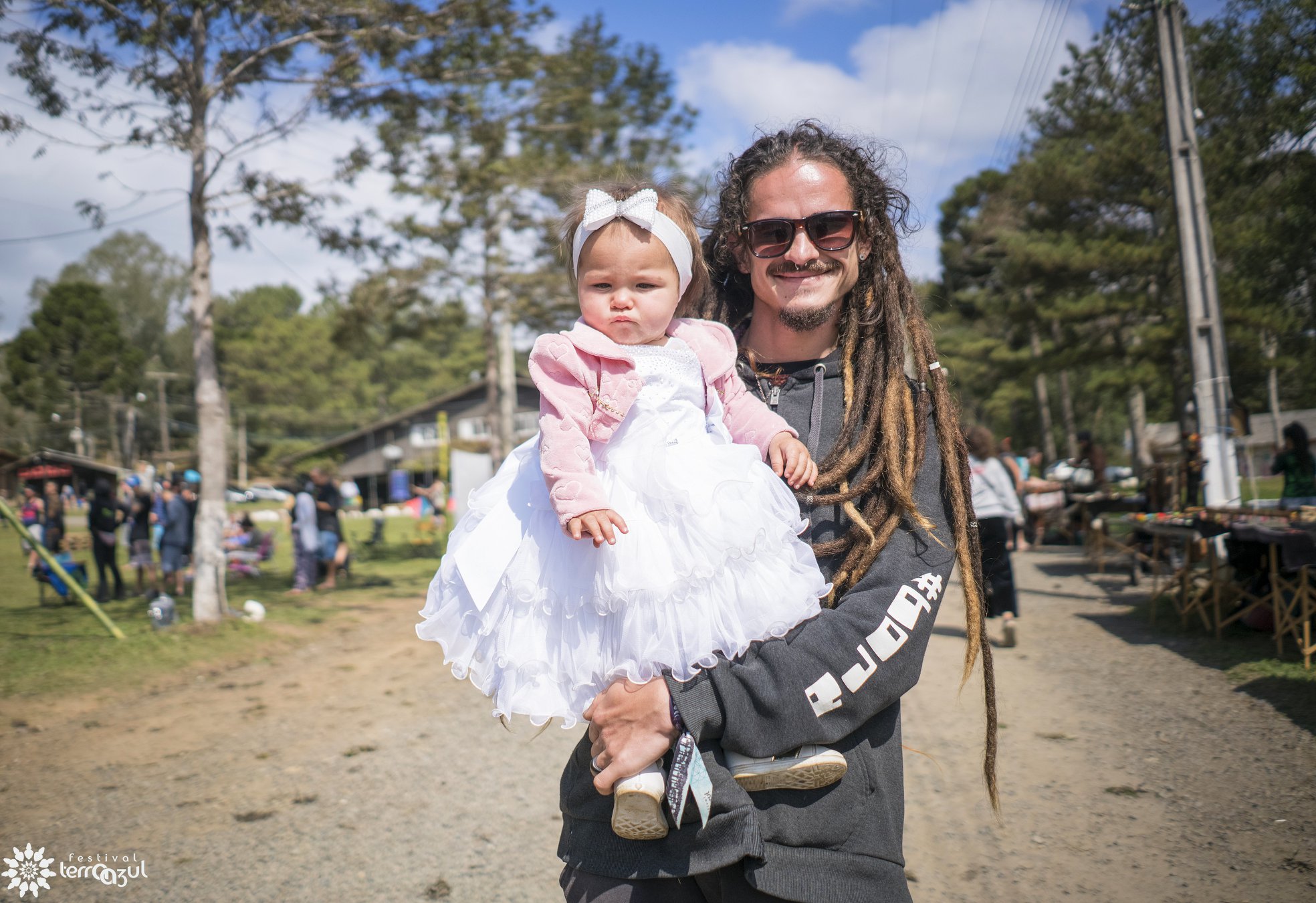 O festival estava lindo cheio de crianças! Aproveito para destacar que teve até neném dando os seus primeiros passos no main floor! A cristal Isabela, filha de Mylaine e Julio Brum que é o idealizador do núcleo Bora Psicodelizar, responsável por festas como Dark City, Rajani, Yin Yang, dentre outras. Tive o prazer de avistar esse momento e fiquei pensando no quão emocionante deve ter sido para os papais do Trance presenciar a filha aprendendo a andar em um festival!