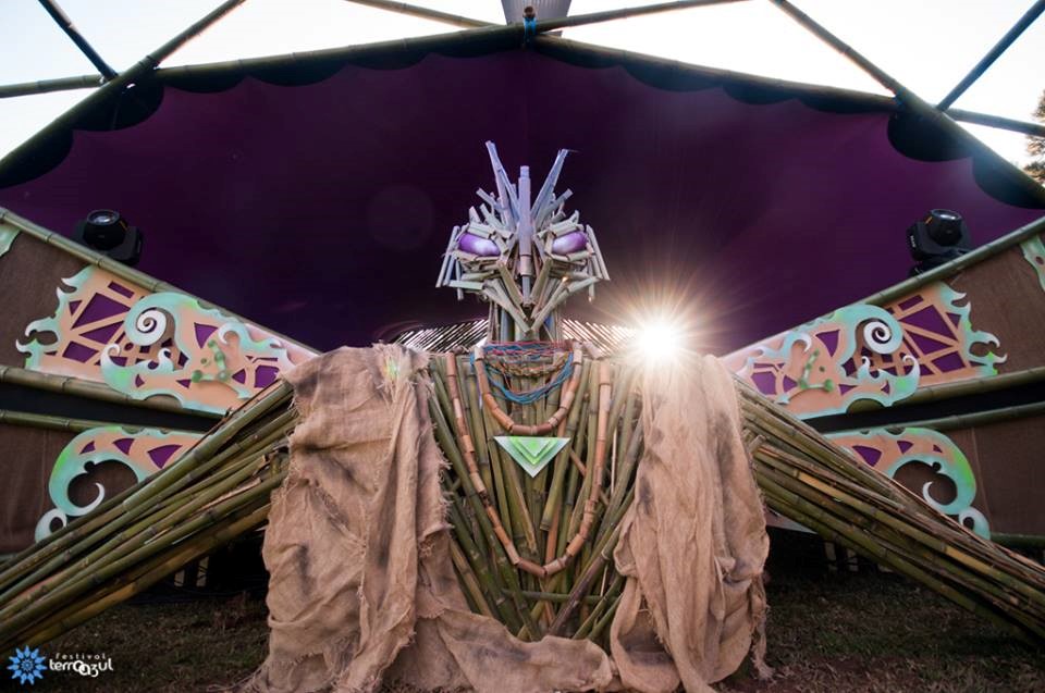 Na frente do palco estava a representação do guardião que foi construído a partir de bioconstrução. Adorei!
