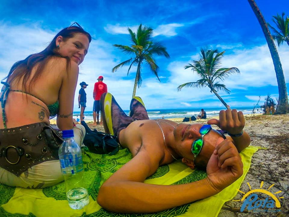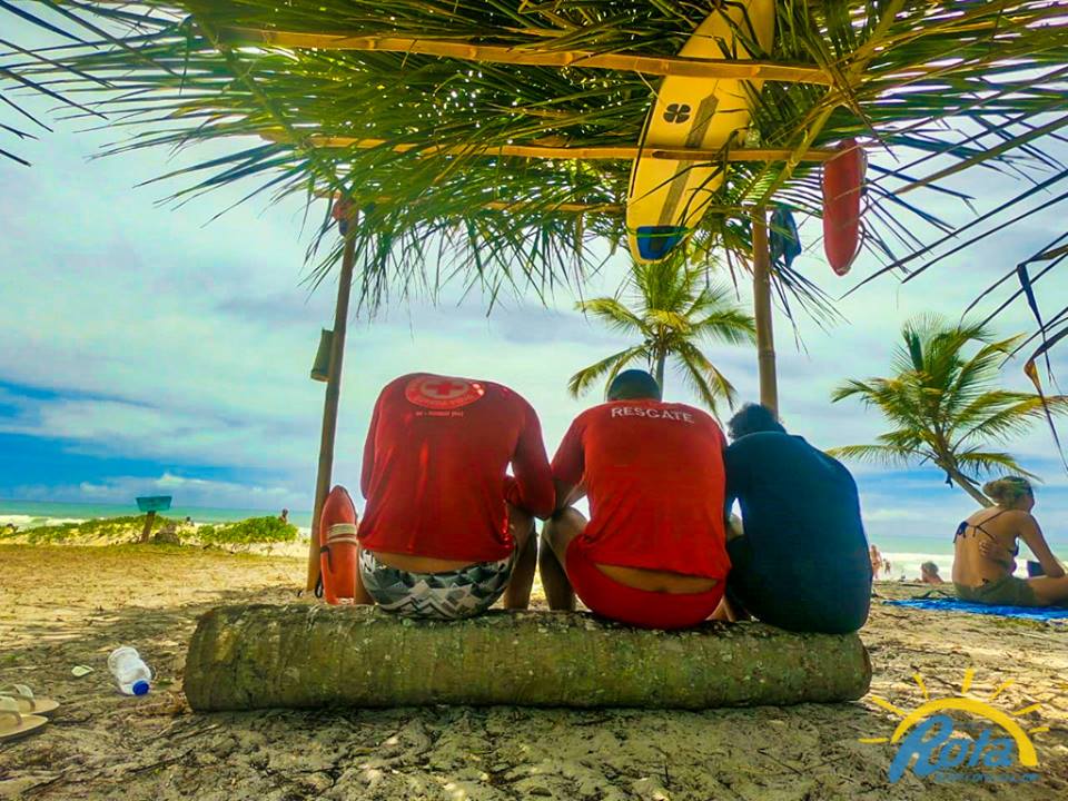 Desde ali, os salva-vidas olhavam e instruíam a galera a tomar banho com cuidado na beira, pois o mar de São Domingos exige alguma intimidade previa com o oceano, principalmente pela correnteza de retorno. Em contraste, para quem curte pegar onda/jacaré ou nadar, o pequeno swell desses dias só acrescentou no astral do lugar. E já vai um grande salve para a guarda-vidas e surfista baiana, Laíne Silva, que emprestou a sua prancha na boa!