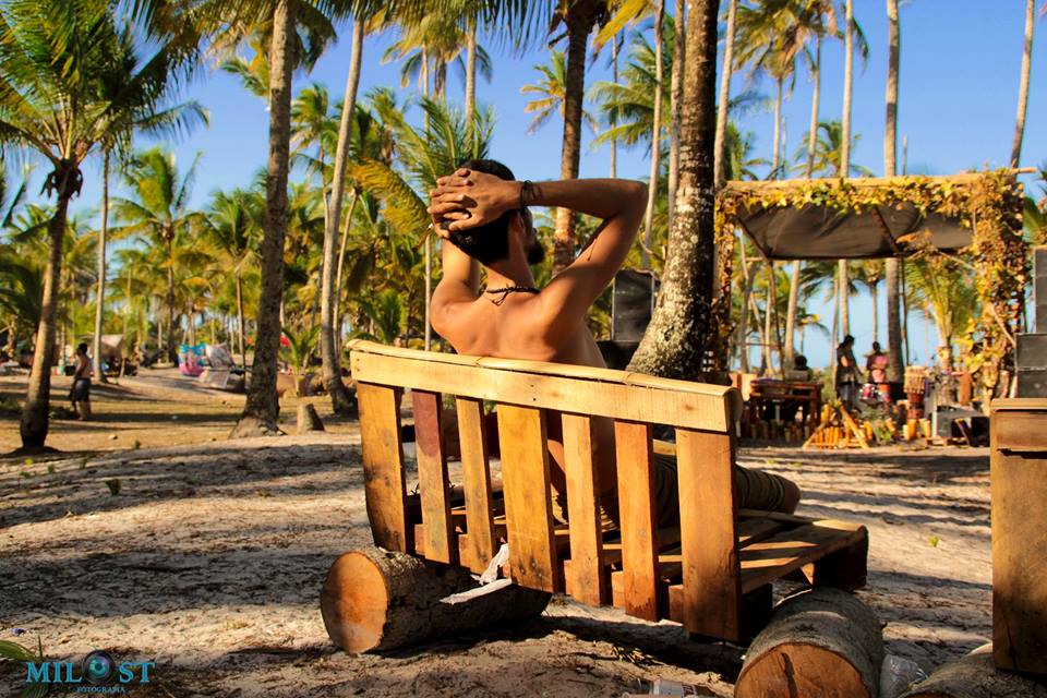 Confesso que, apesar de sempre celebrar as iniciativas sustentáveis, quando li que a produção iria construir quase tudo em parceria com uma empresa regional de pallets, imaginei um festival de estética média. Chegando lá, fiquei surpresa com como os pallets se integravam harmonicamente ao local, reforçando a vibe descontraída e relaxante, e a decisão me pareceu acertadíssima. Fica aí o primeiro aprendizado para alguém como eu, acostumada com festivais mais ao sul do país, onde a estrutura é fundamental para lidar com as inclemências climáticas: no calor, sem chuva ou vento forte, o minimalismo humano é luxo, pois a grande estrela do filme é a própria Natureza, e nenhuma decoração psicodélica a desafia!
