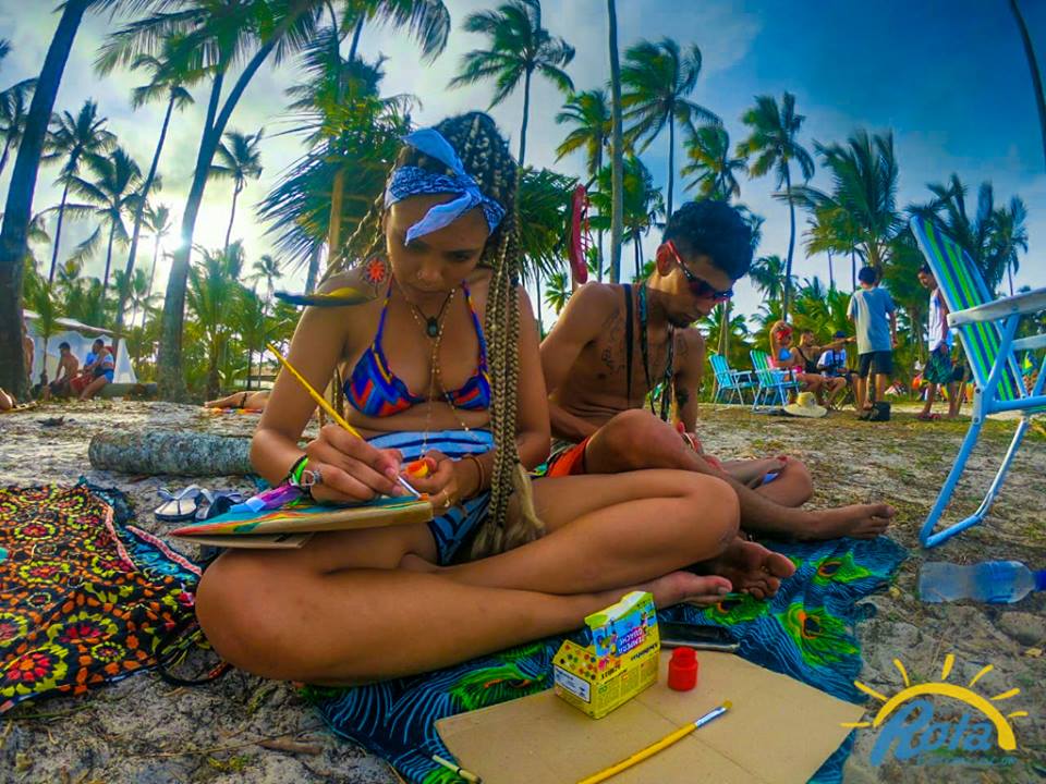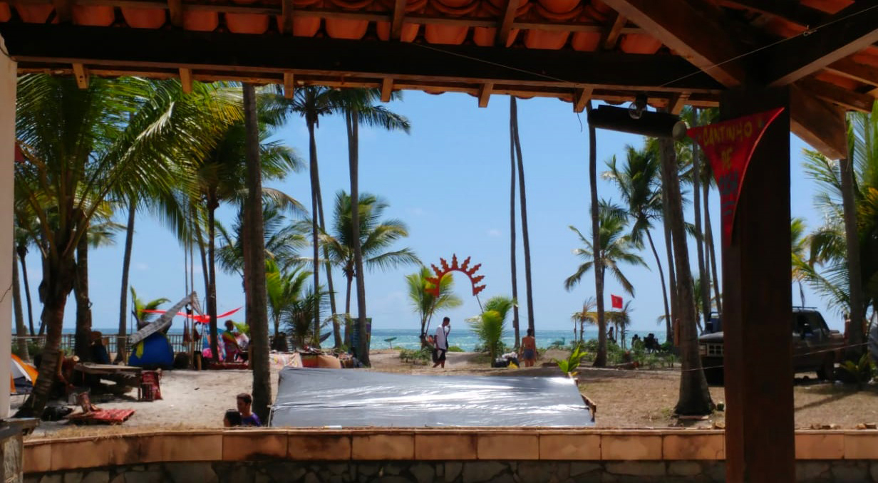 Com vista para o mar, o chillas era um ótimo lugar de descanso. Vi algumas apresentações como a do Rafael Hathatun, Dj Nuvem (click aqui para conferir o set completo no Terra em Transe) e a das minas do projeto X073 (Xota 073) com Moa Vênus, rap feminista de Ilhéus, com uma mensagem anti-fascista e anti-racista.
