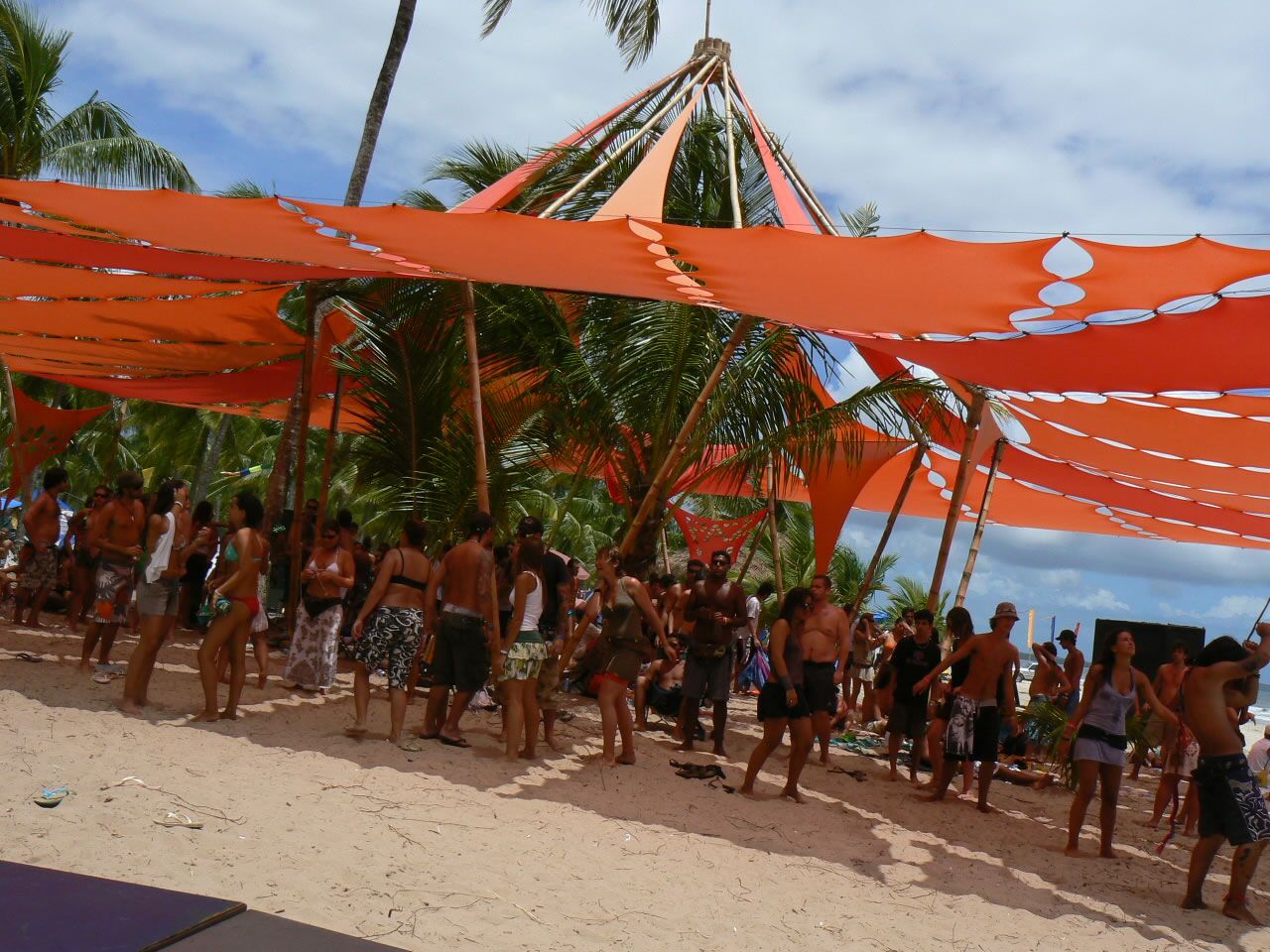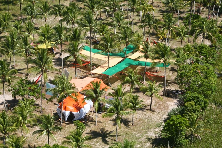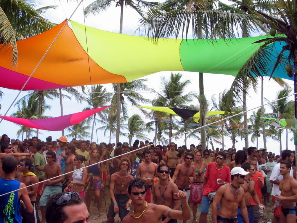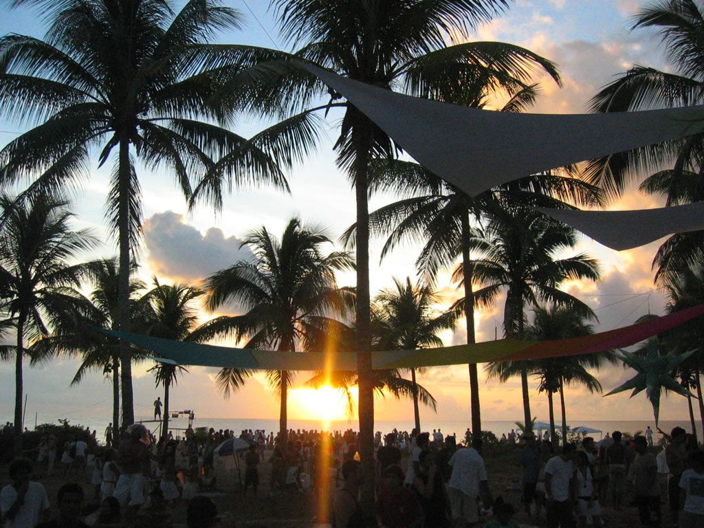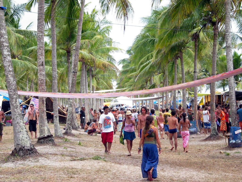 Lá presenciamos uma praia deliciosamente deserta que antes era escondida por uma rótula avisando de que você é bem vindo à Pratigí, e era ali que finalmente se pegava o último transporte até o camping na orla da praia, através de um caminhão com bancos nas laterais da caçamba. Você tinha que comprar uma pulseira de translado que dava direito a infinitas viagens de vai/vem de Pratigí até o fim do festival. Nesses caminhões você, cansado de viagem, sobe se segurando em algo, se joga e curte o brusco balançar do vai e vem de caminhões que fazem e refazem esse percurso. A cada caminhão que passava por nós, batíamos palmas um para outro, acenávamos e gritávamos de emoção de chegar ali e por tudo que ainda viria.
